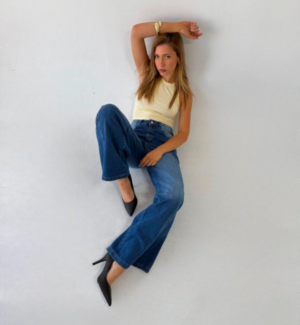 Wide leg maxi celeste oscuro (W62)