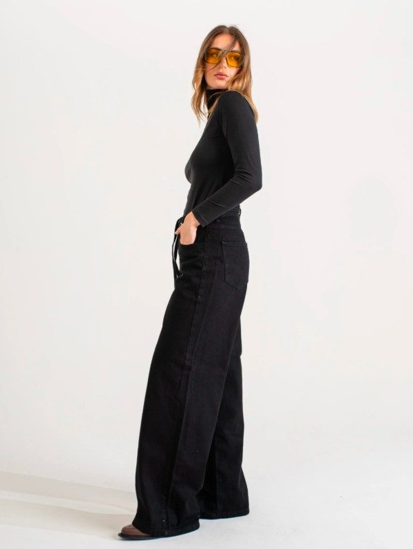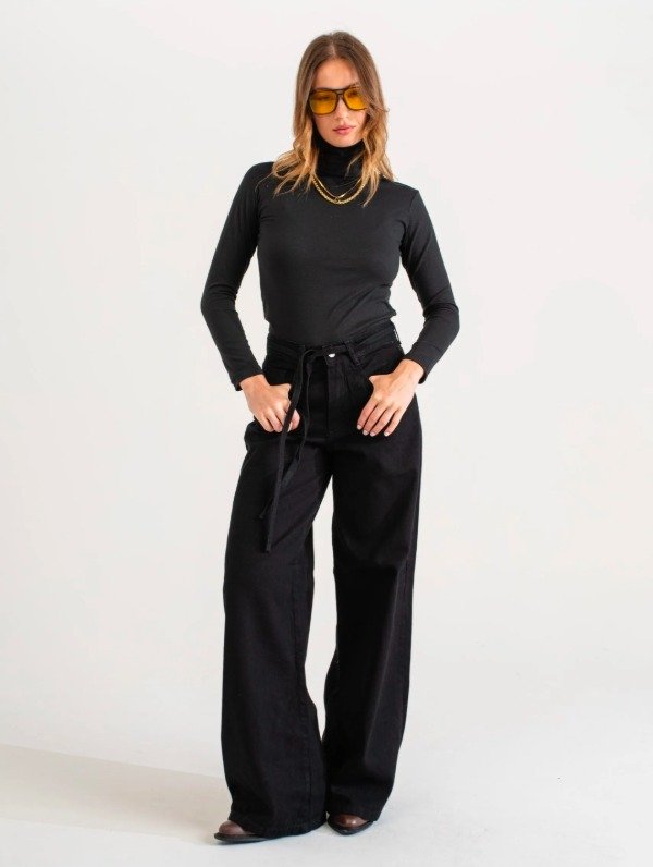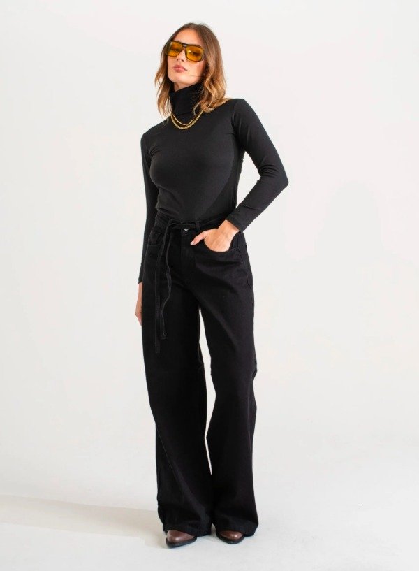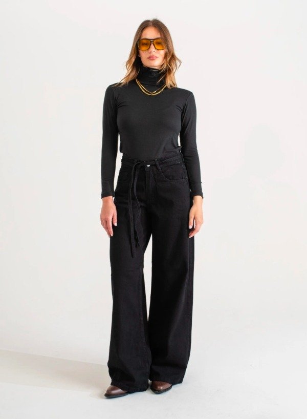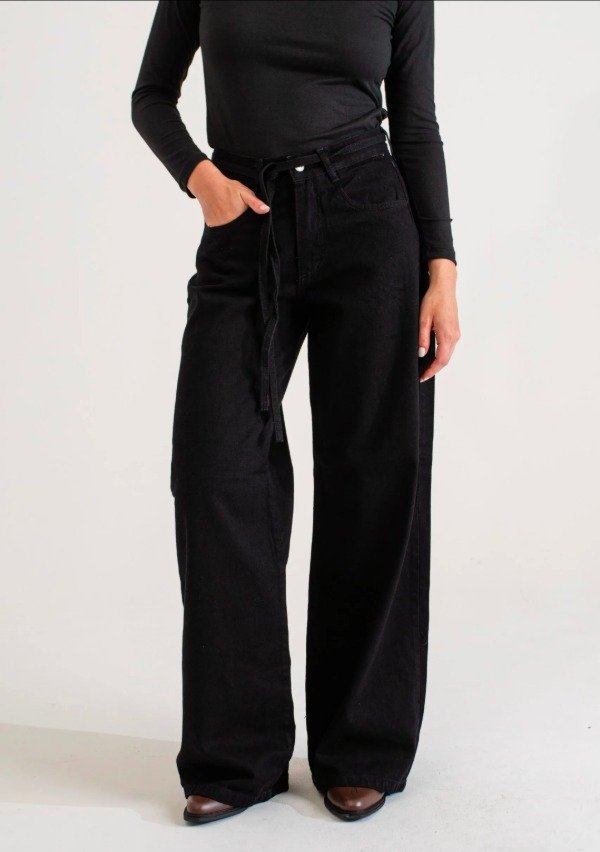 Wide leg negro con cinto (W66)